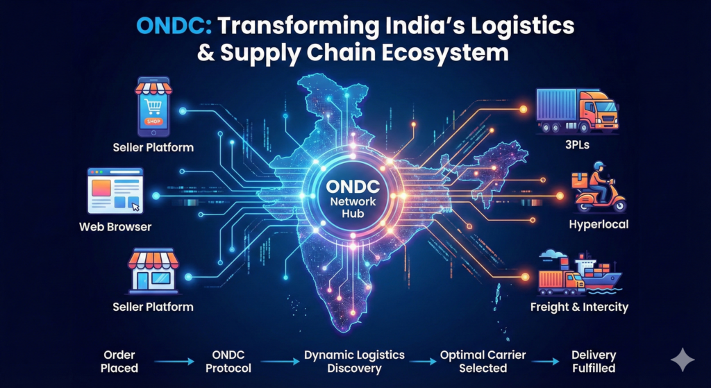 India’s logistics and supply chain sector is undergoing a major shift — and the catalyst is ONDC (Open Network for Digital Commerce). While the platform is popularly known for democratizing e-commerce, its biggest long-term impact will be on logistics, warehousing, delivery networks, and first-mile to last-mile connectivity.